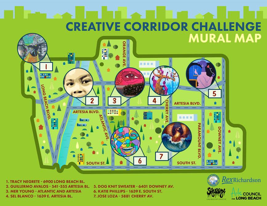 Richardson spearheaded the Creative Corridor Challenge as part of North Long Beach’s “Roadmap to the Renaissance,” in partnership with the Arts Council for Long Beach and the Squeeze Art Collective. Eight local artists were selected to work at seven locations around the area, whose collective work now covers the majority of corridors in the district, according to the release.