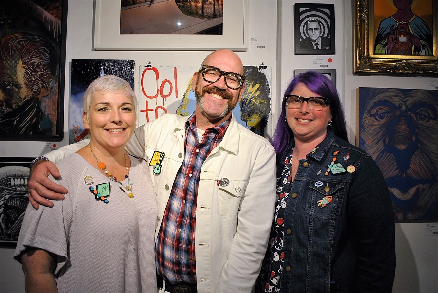 Photos by Asia Morris. From left: artists and curators of Icons Lori Herbst, Chris Shary and Bonnie Robinson Stewart.