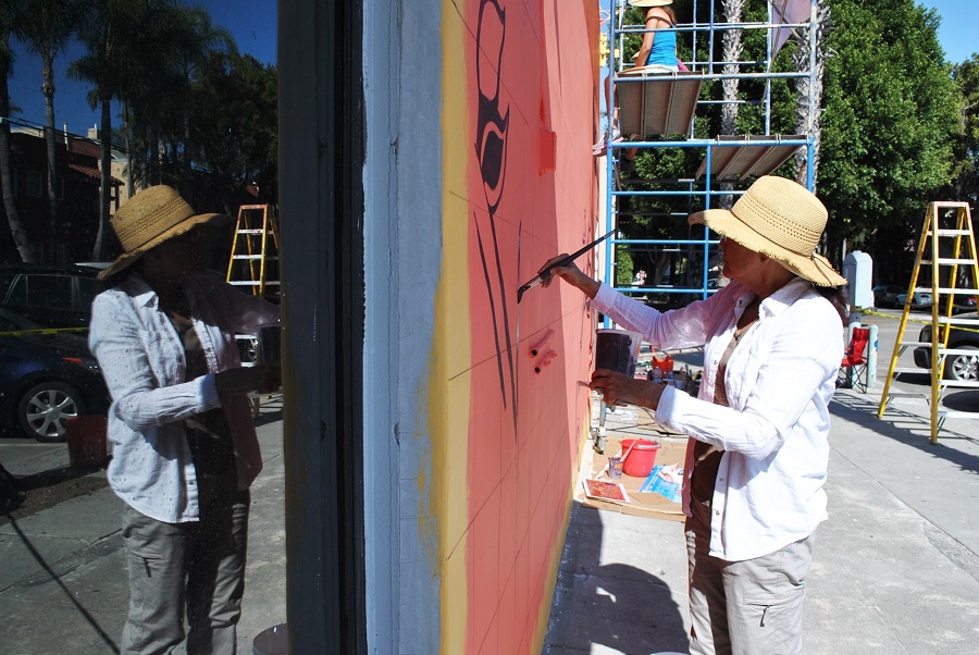 Participating artist Gail Werner at work on her Pow! Wow! Long Beach 2016 mural.