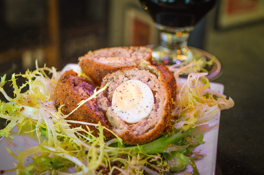 And the Wee Scotch Egg [pictured above left], TSL’s version of the English classic, is quite possibly one of the best scotch eggs I’ve had this side of the Atlantic: a hard-boiled quail egg is wrapped in housemade pork sausage, tossed in breadcrumbs, and deep-fried. One of the keys to their scotch egg is the savory sausage that is seasoned to perfection (not with excessive salt but spices and herbs) and a baby endive salad that adds a perfect amount of bitterness and tartness thanks to its light vinaigrette.