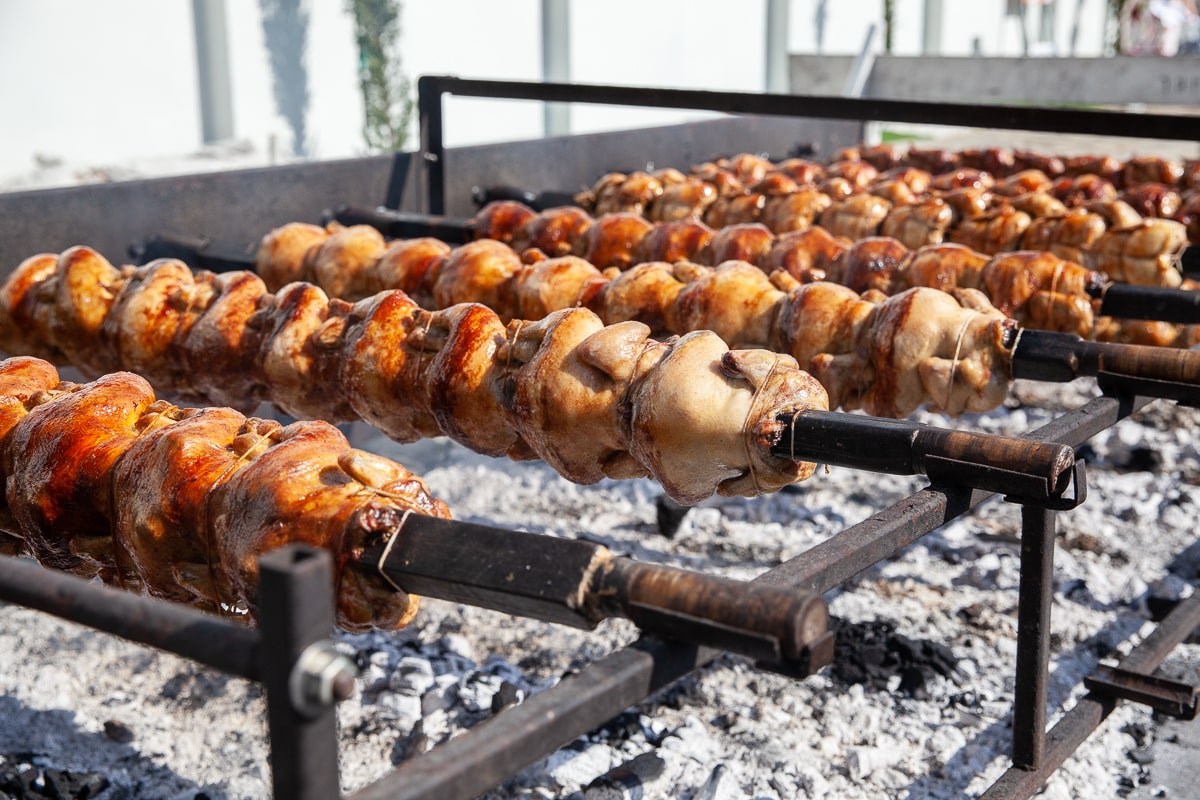But here’s the deal, there are other things happening at the festival. So, we’ll make you a deal. Let us give you a shot of some of the food from last year’s festival to gnaw on—how’s about we start with what appears to be acres of delicious, tender, succulent rotisserie chicken—while we talk about those other things.