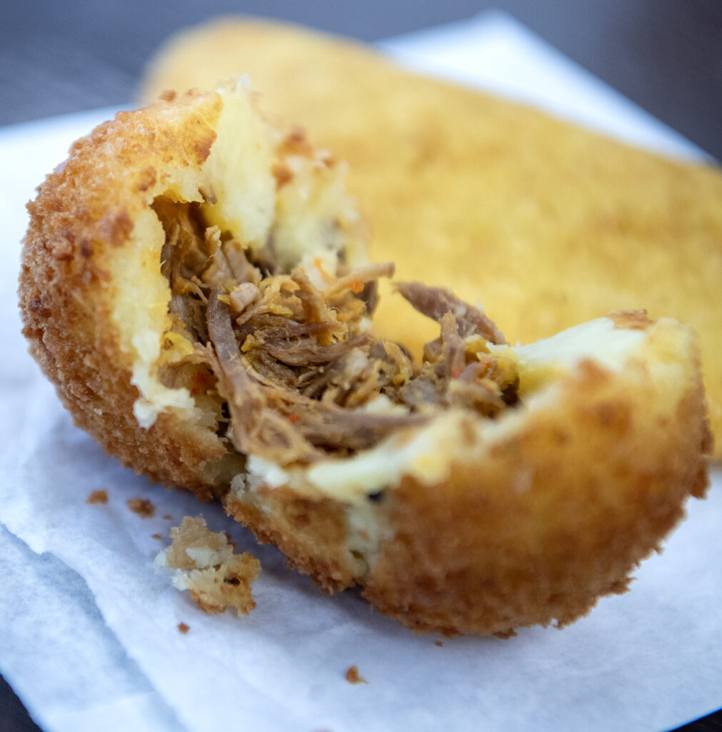 The beef is shredded (Porto’s uses ground beef) and well seasoned. Customers can also choose a chicken filling, but I would recommend the beef. Frying the potato ball creates the crispiest shell that perfectly contrasts the softness of the mashed potatoes. I only ordered one because I knew I wanted to try other items, but I could’ve easily eaten multiple (and next time I will).