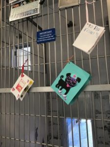 Handmade cards, earnestly expressing love for pets as only children can express it, adorned the pets’ kennels.