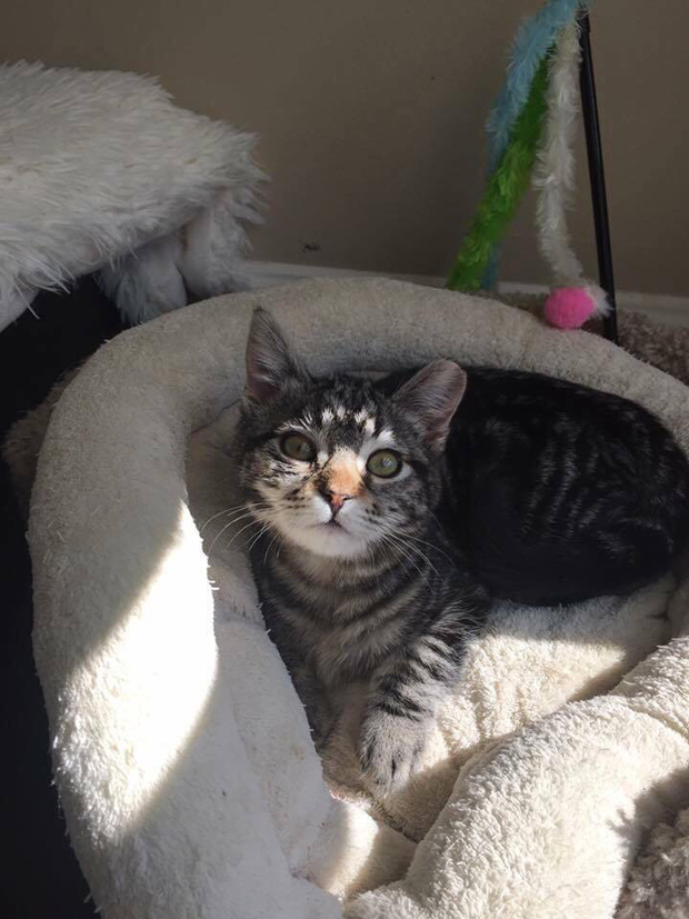 Gretel is a year old. She had been at the shelter since November and had no luck. She suffered from severe URI, hair loss from the stress of being cooped up in a shelter kennel, and—most horribly—her tail had been cut in half somehow. So she has a short tail, but she’s long on love and beauty. Contact The Little Lion Foundation on this link to adopt any of these cats, or drop by this weekend at the Cerritos PetSmart, 12741 Towne Center Drive, Cerritos. They’ll all be there for national adoption weekend!