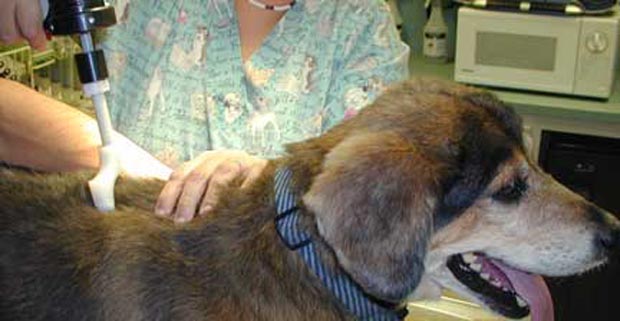 This dog is getting noninvasive VNA therapy for its arthritic spine.