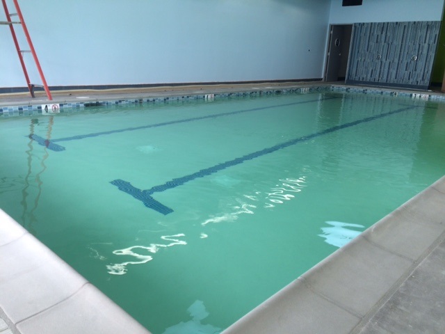 Today, the 40-by-20 foot pool is filled with iridescent water, and a tiled locker room partition stands proudly in the blank corner’s place. By the weekend, the facility’s new look will be complete.