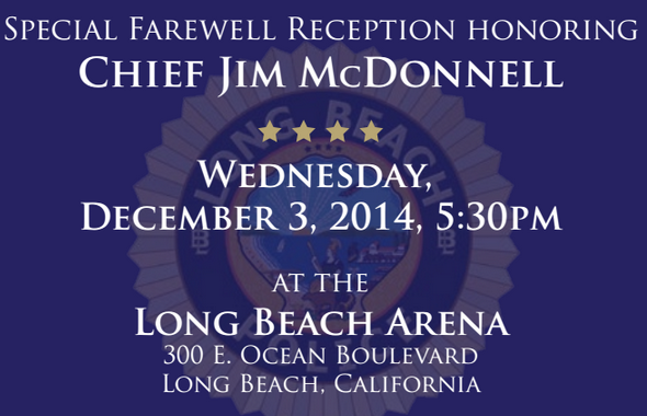 The Long Beach Police Foundation invites the public to a special farewell reception Wednesday honoring former Long Beach Police Department Chief Jim McDonnell.