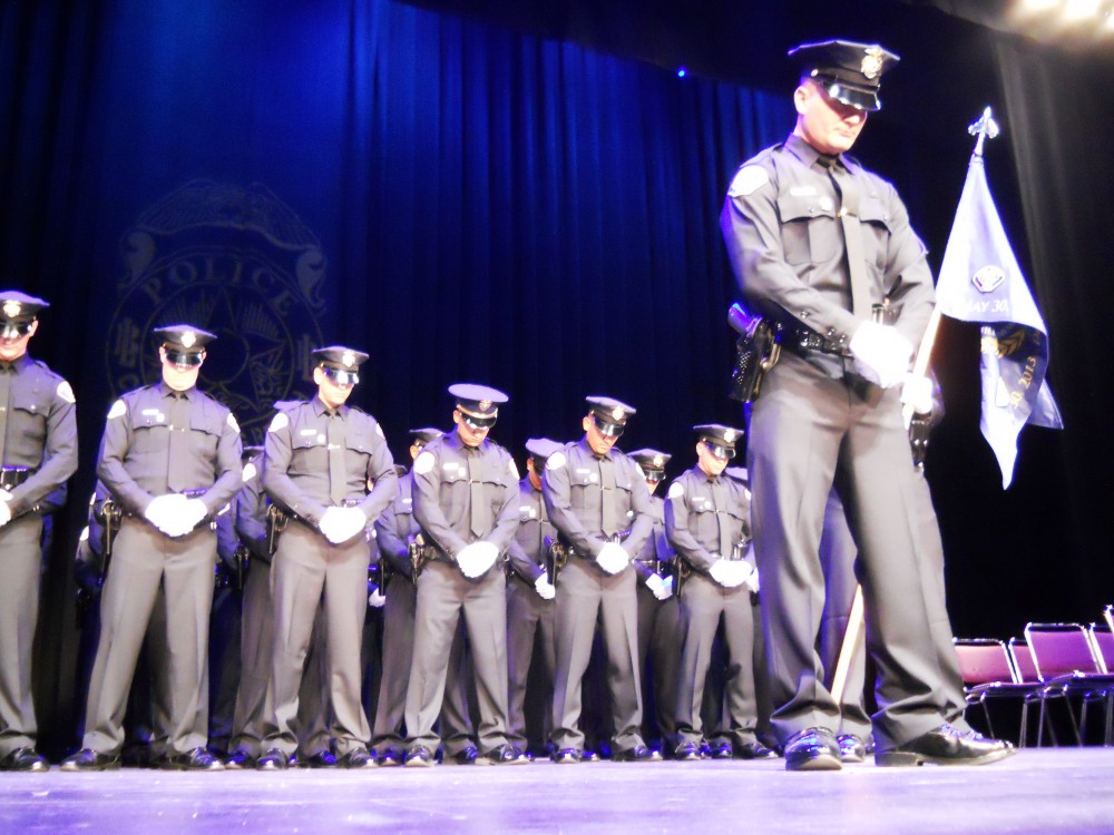 At Thursday’s LBPD graduation ceremony, the class stood in formation on stage as Chief Jim McDonnell gave encouraging, yet haunting wisdom before the graduates.