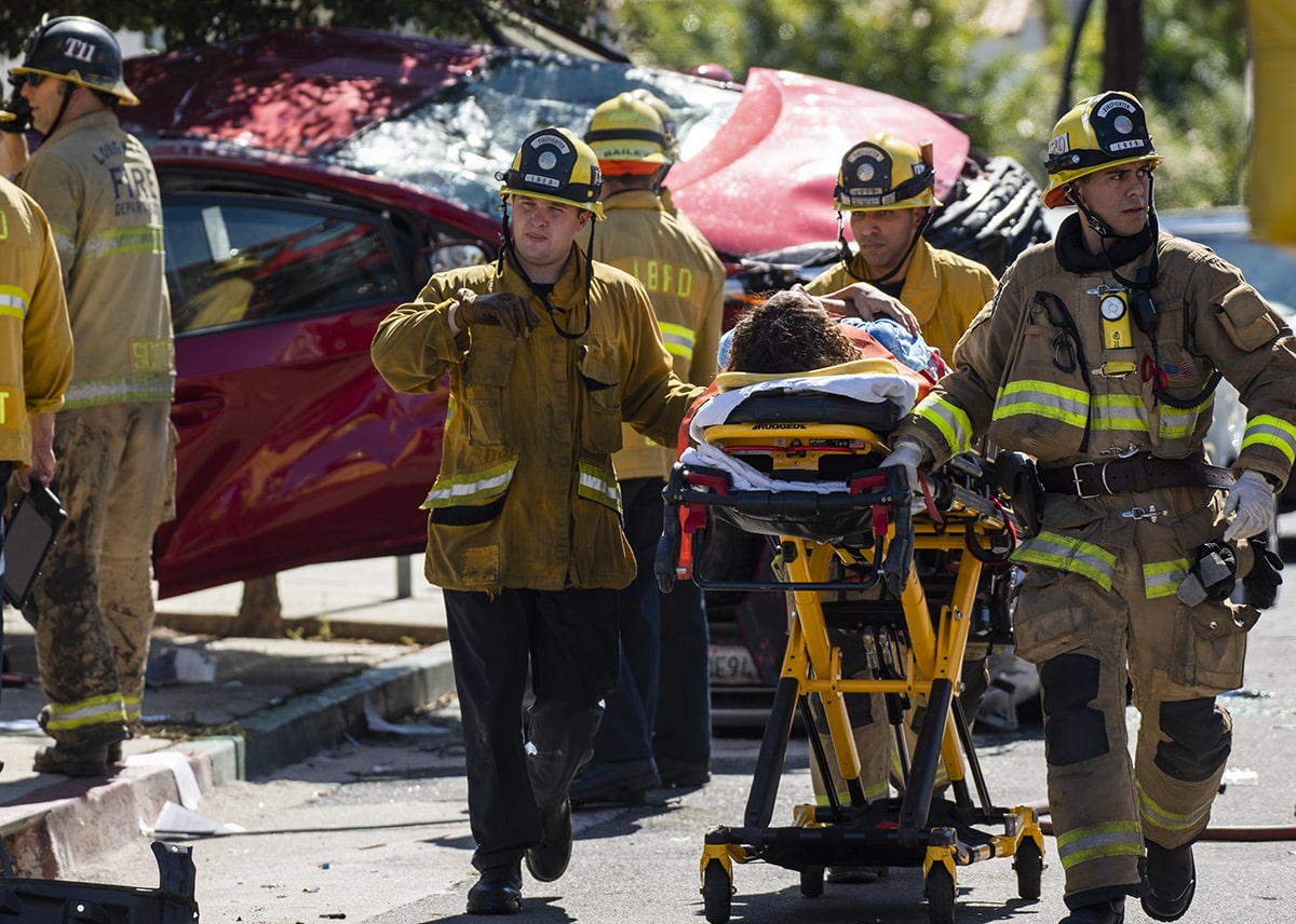 The wreck happened around 12:15 p.m. on Wardlow Road at Lemon Avenue, according to Long Beach Fire Department spokesman Brian Fisk.