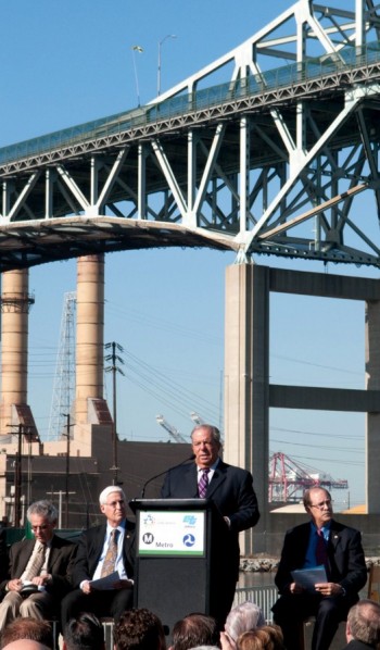 “It’s a proud day for the City of Long Beach, the County and the State,” said Long Beach Mayor Bob Foster. “We acted — in time — to replace this aging bridge, and in so doing, we will build a landmark structure that will create jobs now and guarantee a stronger Port and smoother transportation network for the future.”