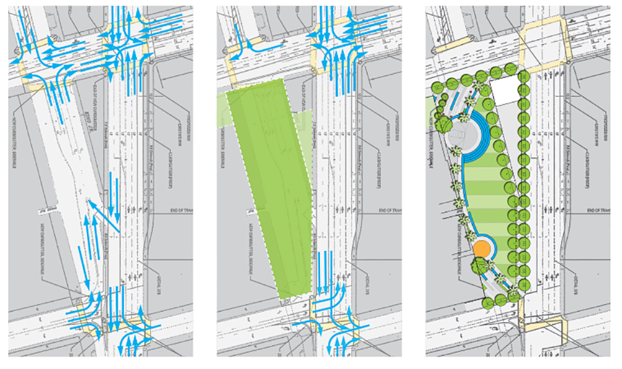 The idea to turn the intersection into a park and design for the new space was originally developed by Brian Ulaszewski of City Fabrick in 2007. The park will add nearly a full acre of park space to a neighborhood that has none within a 1/2 mile walking distance of the proposed site. Vice Mayor Suja Lowenthal took time to recognize Ulaszewski and others for their efforts to make the park a reality.