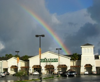 A rainbow stretches over the Long Beach Whole Foods store in this undated photo. Photo courtesy of Whole Foods.