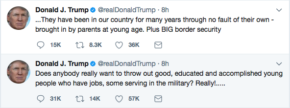 In a string of early morning Tweets, the president said no deal had been reached—something he later recanted—but appeared to express sympathy for those currently protected by DACA.